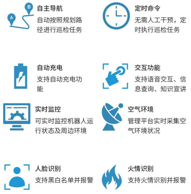 無人巡檢機器人,它是一種綜合了自主導航、音視頻智能識別、危險預警、人員識別、人體跟隨等多種智能技術相融合的綜合性安防機器人,可以協(xié)助人們完成重要場所的監(jiān)控巡邏保安工作,同時可結合固定監(jiān)控和環(huán)境信息的收集分析,構成完整的安防監(jiān)控系統(tǒng),滿足數(shù)據(jù)中心、酒店、商場、辦公區(qū)域等室內場所的安全巡檢需求。