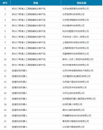 附件:在科技支撐抗擊新G肺炎疫情中表現突出的人工智能企業名單