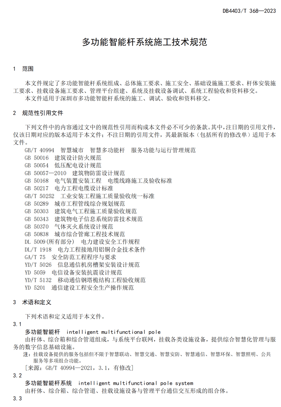 附件:深圳市地方標準《多功能智能桿系統施工技術規范》
