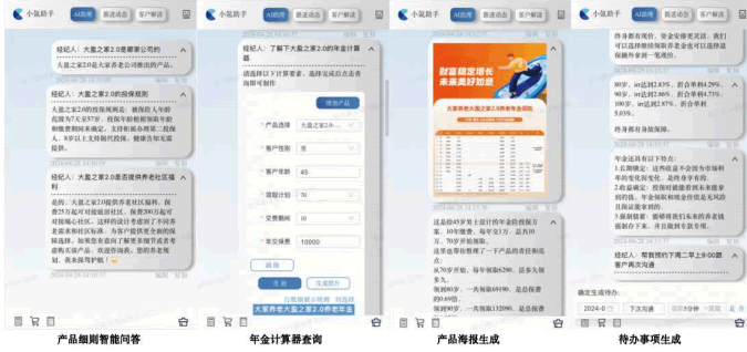 保險AI大模型助手在保險代理人與客戶溝通中的廣泛應用,提供實時問答支持和資料查詢功能,簡化了代理人查詢產品資料的流程,減少了溝通次數(shù),提升了客戶服務效率和質量,增強了客戶體驗和滿意度。這些創(chuàng)新技術和功能的實施,顯著提升了代理人的工作效率和專業(yè)能力,有效支持了保險企業(yè)在競爭激烈的市場中保持競爭優(yōu)勢。