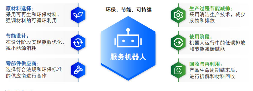 服務(wù)機器人行業(yè)有著技術(shù)創(chuàng)新驅(qū)動和多領(lǐng)域應(yīng) 用的特點 ,其生產(chǎn)和使用對環(huán)境的影響尤為重 要。當前范圍內(nèi)環(huán)境保護法規(guī)和政策不斷 加強 ,對G科技行業(yè)的環(huán)境責任提出了更G要 求。消費者和投資者越來越關(guān)注企業(yè)的環(huán)境責 任 ,企業(yè)的環(huán)境表現(xiàn)直接影響服務(wù)機器人企業(yè) 的品牌形象和市場競爭力。本白皮書經(jīng)過充分 調(diào)研 ,證明通過以下策略可有效構(gòu)建服務(wù)機器 人行業(yè)的綠色供應(yīng)鏈: