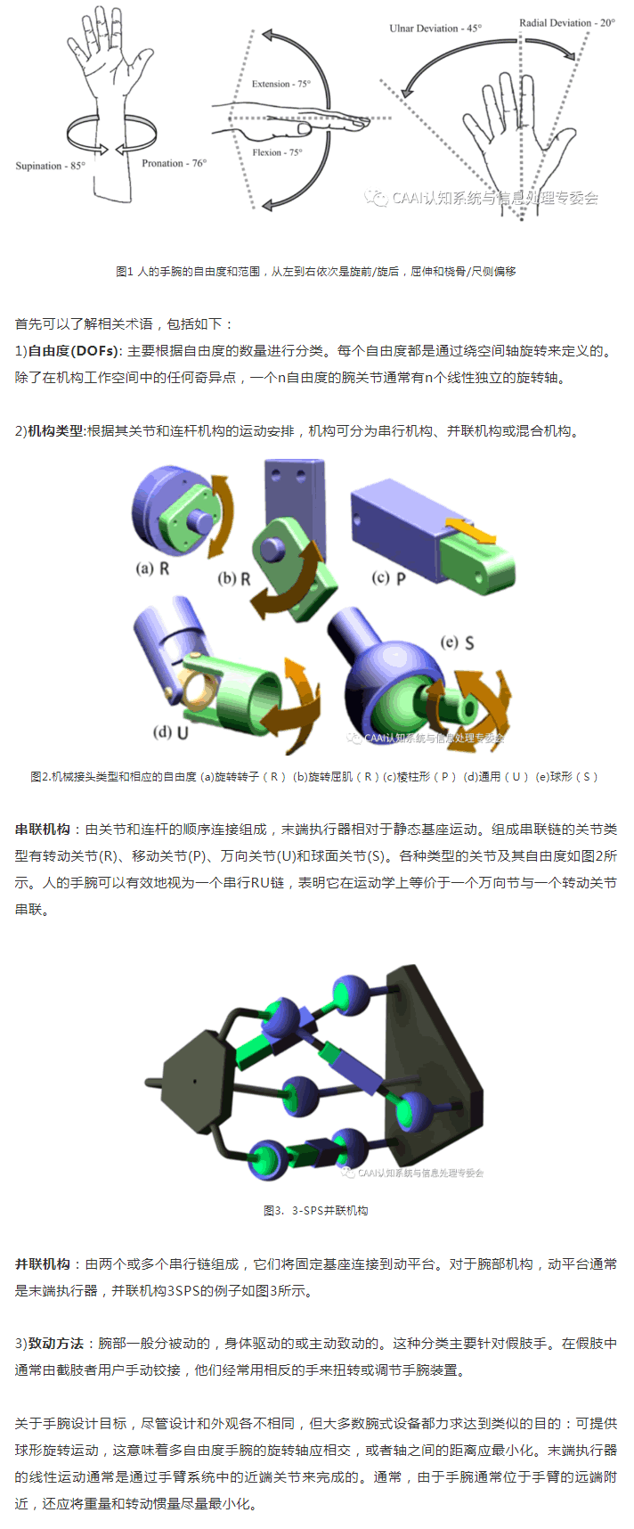 人體手腕對手臂系統的靈活性有很大的貢獻,增強了靈巧性和操縱能力。然而,學術界和工業界都傾向于把更多的注意力放在手爪的開發上,而不是手腕系統的開發上。有研究表明,與手腕能力有限的G度靈巧終端設備相比,手腕的靈巧度增加可能對操作能力的貢獻更大。當使用簡單的末端執行器時,或當對象完全約束手的手指時,腕部的作用變得特別重要。