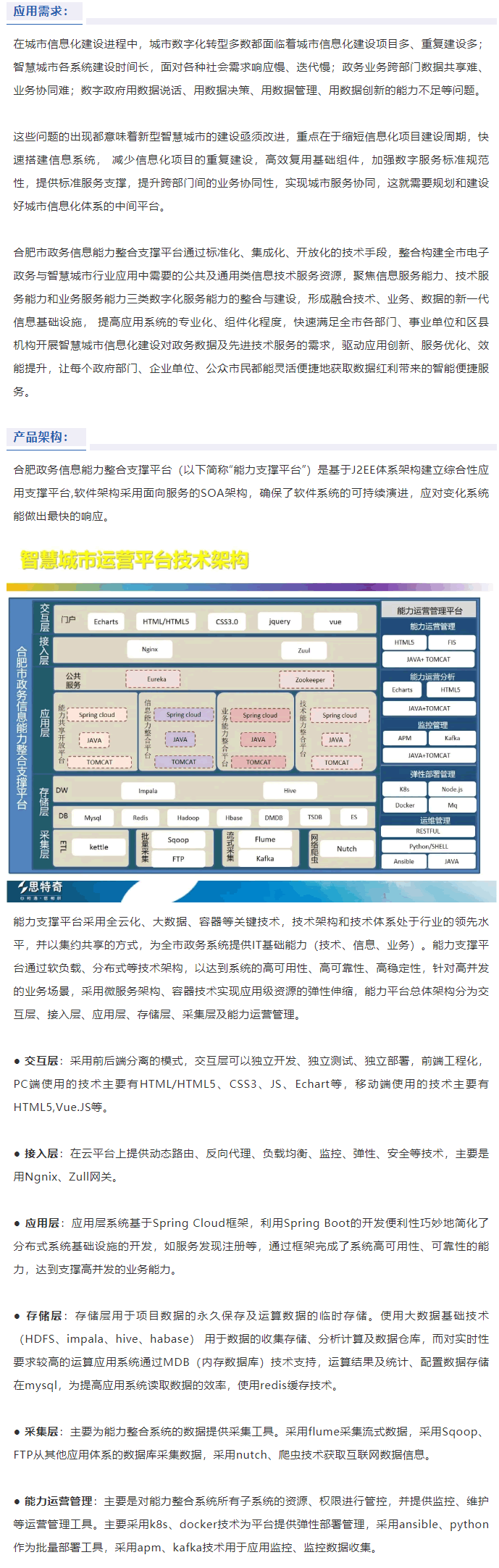 合肥市政務信息能力整合支撐平臺已經建成集中面向全市智慧城市各類行業應用的信息、業務、技術服務資源的統一運營管控平臺,支撐各類城市信息技術資源共享利用,整合和新建各類信息技術服務資源,建立統籌推進、共建共享的數字化服務支撐體系。目前已完成包括一碼通域、智慧人才、不動產登記在內的18類應用的快速支撐。