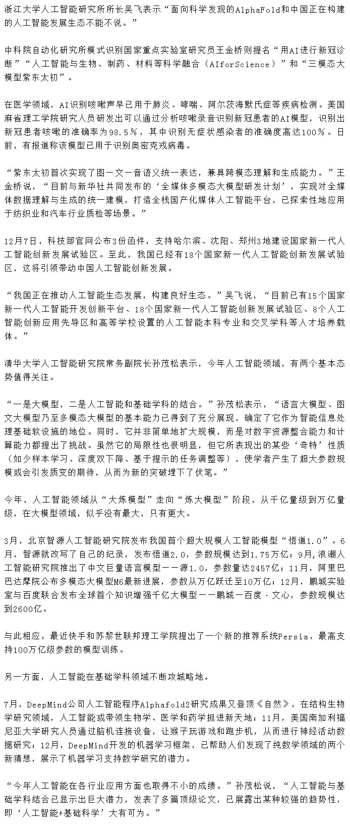 浙江大學人工智能研究所所長吳飛表示“面向科學發現的AlphaFold和中國正在構建的人工智能發展生態不能不說。”