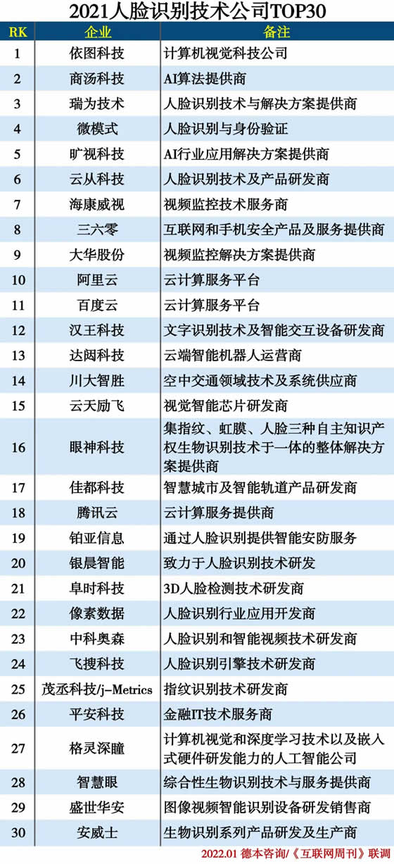 佳都科技,數夢工廠,四維圖新,海納云,明略科技,商湯科技,大華股份,京東數科,清明星辰,云天勵飛,永洪科技,艾云科技,云從科技,眼神科技