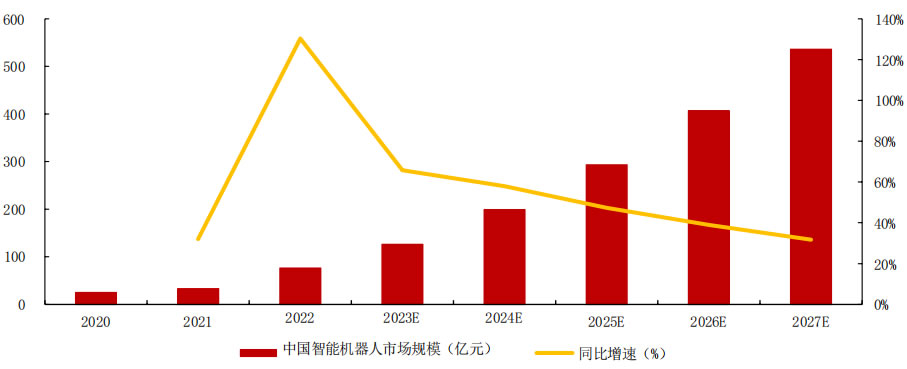 注:智能機器人指結合AI算法、具備自主學習能力和環境特征適應性的機器人產品,包含應用于工業、物流、服務等行業的商用機器人,不含家用機器人